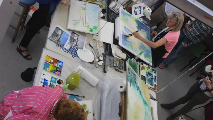 This is a 501c3 working artist gallery with a continuously changing display of local original art for show and sale. You may find artists painting during your visit or see a workshop in progress. Please check our website for up-to-date information. Be sure to check for classes, short workshops, and Famous Artist Workshops. Membership provides discounts on classes and workshops, a place to create art with no additional fees, library use, only 20% sales commission to gallery, plus tax.