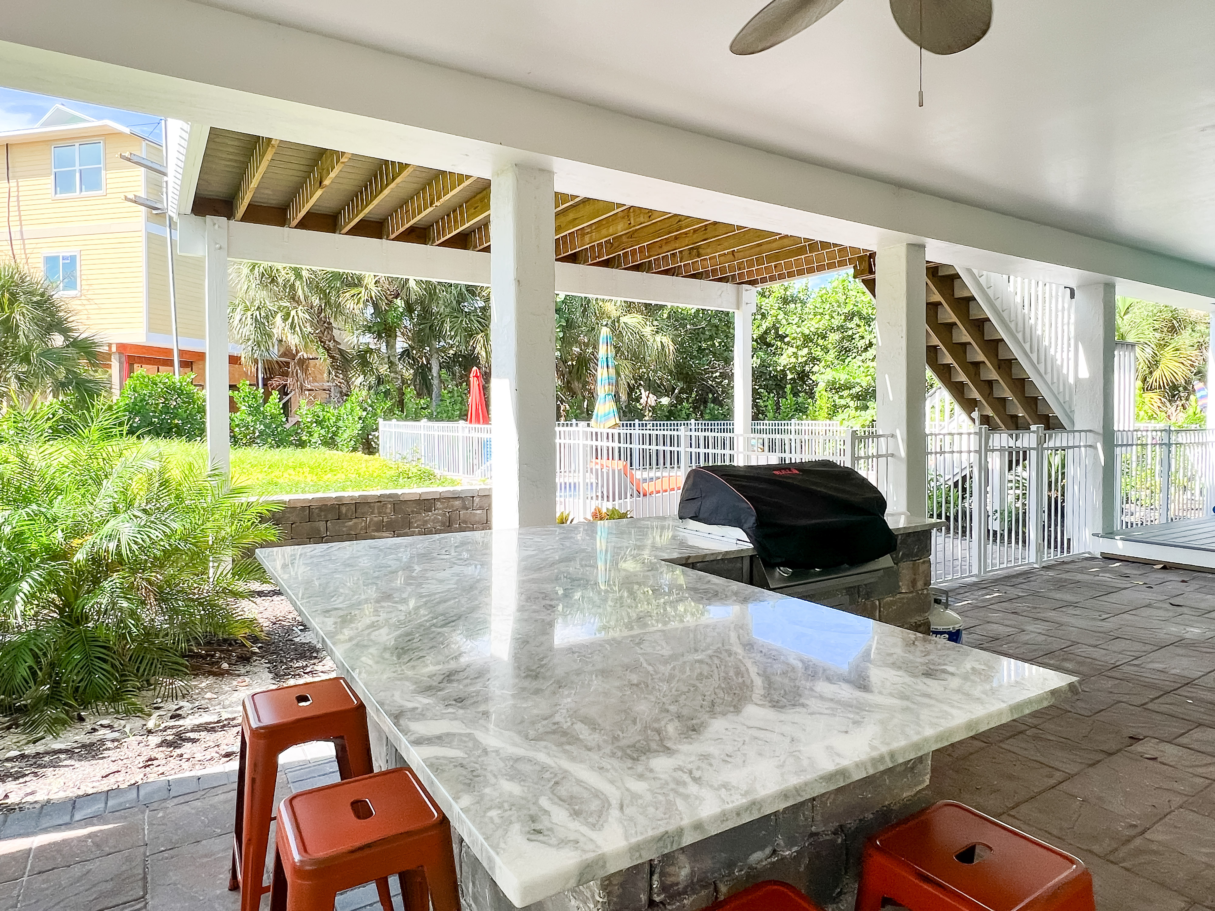 Step inside Green Tortuga and you will be greeted with spacious and comfortable living areas, perfect for relaxation and entertaining. The open floor plan allows for seamless flow and maximum natural light, creating a warm and inviting atmosphere. The four bedrooms and three full bathrooms ensure that everyone in your group has a comfortable and private space to retire to after a day of adventure. Or come rest and relax at the under house entertainment area with private heated pool and spa.