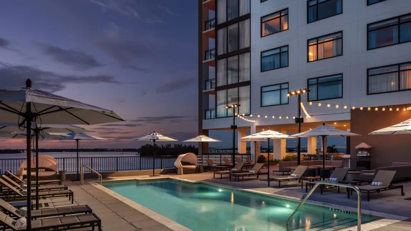 Luminary Hotel & Co., Autograph Collection in downtown Fort Myers boasts 243 guest rooms & suites, with connectivity to the 37,000-sq.-ft. Caloosa Sound Convention Center. Positioned in a lively river district, Luminary Hotel & Co. features a rooftop bar, two restaurants, retail and ample meeting space. The Workshop, a state-of-the-art culinary theatre, hosts culinary classes and encourages collaboration and innovation.